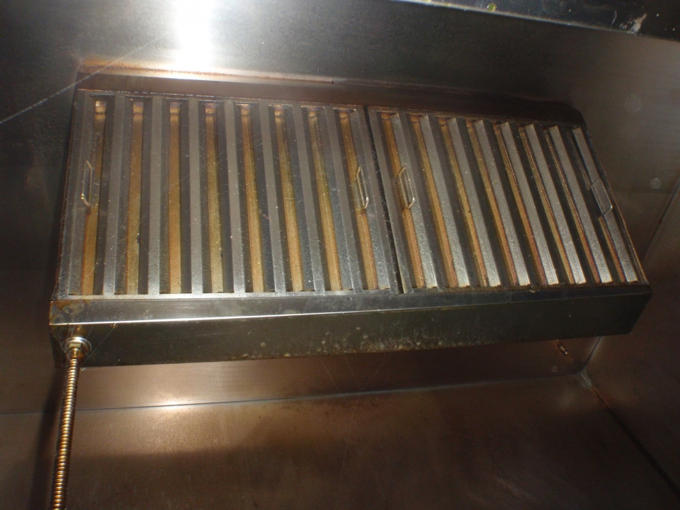 厨房排気ダクト内は、油塵でいっぱい! 火災の危険性が非常に高くなっています。